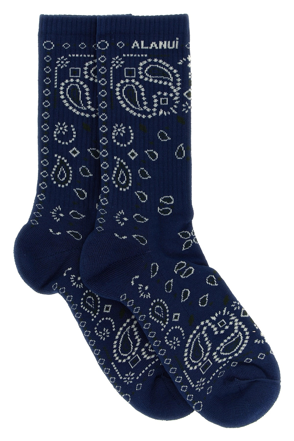 cod. LWRA007E25KNI00148564856 'Bandana' ribbed cotton socks in jacquard knit. Color: Blue Size & Fit: One size Composition: 80% cotton 18% polyamide 2% elastane Made in: Italy