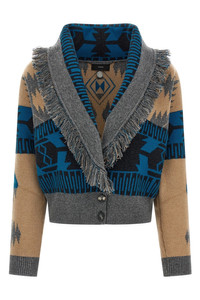 cod. LWHB026E25KNI00262066206 'Icon' cashmere jacquard bomber jacket cardigan with button closure, long cuffed sleeves. Color: Multicolor Size & Fit: True to size fit Composition: 70% virgin wool 30% cachemire Made in: Italy