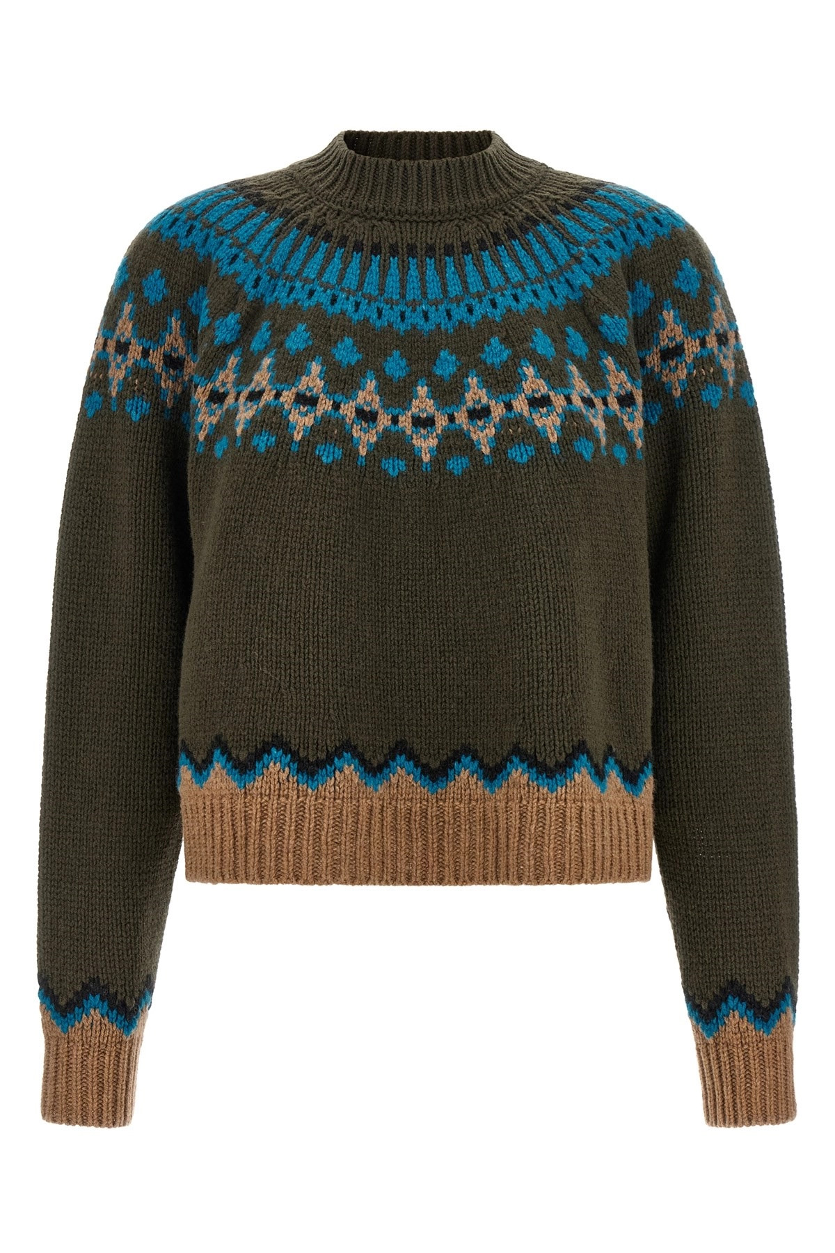 cod. LWHE061E25KNI00156645664 'Sweet Winter' virgin wool jacquard sweater with 'Fair Isle' pattern, crew neck, long cuffed sleeves. Color: Green Size & Fit: true to size fit Composition: 100% virgin wool Made in: Italy
