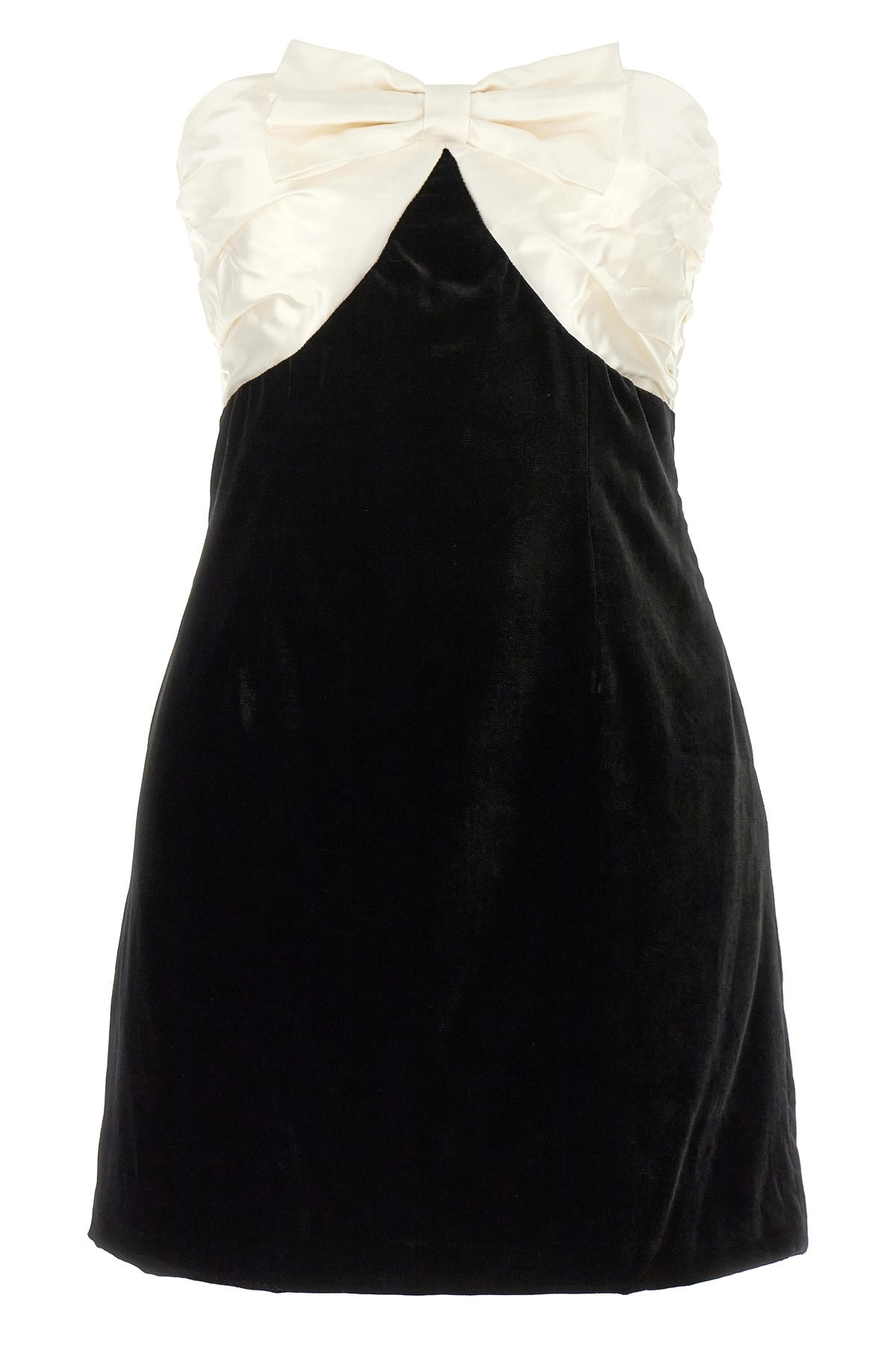 cod. FABX3894F26030900 Short dress in satin and velvet, off-the-shoulder model with front bow, back zip closure. Color: White/Black Size & Fit: true to size fit Composition: 100% silk Made in: Italy