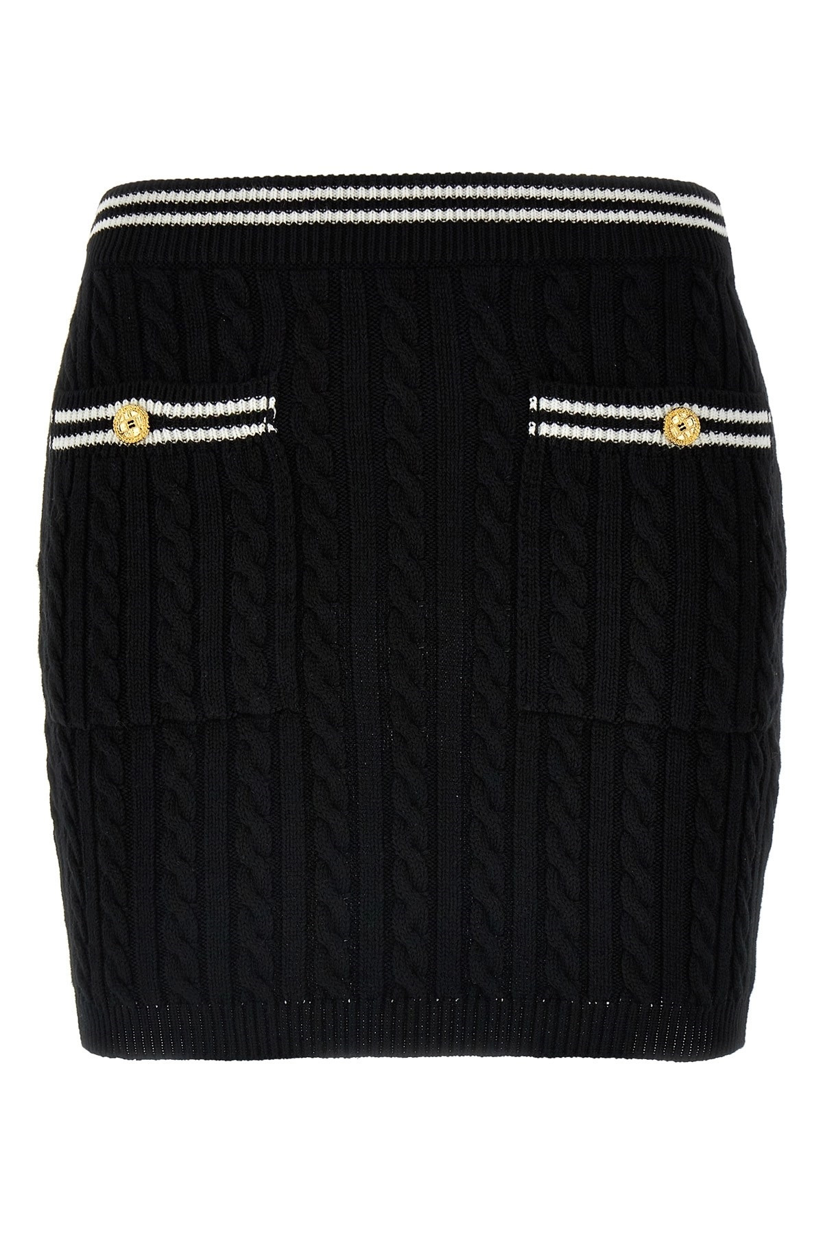 cod. FABX3687K42640091 Braided cotton mini skirt with contrast details, elastic waistband, pockets. Color: White/Black Size & Fit: true to size fit Composition: 100% cotton Made in: Italy