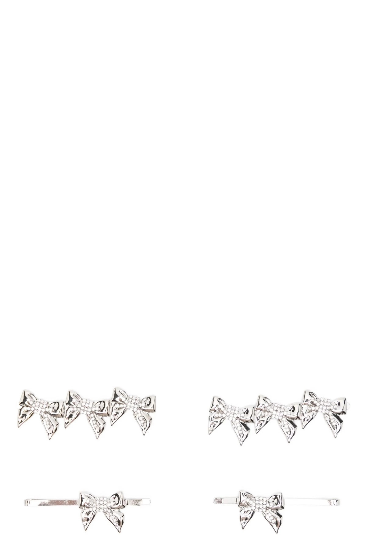 cod. FABA3295J00240001 Set of four metal hair pins with bow and rhinestone decoration. Color: Silver Size & Fit: One size Composition: 80% brass, 20% glass Made in: Italy