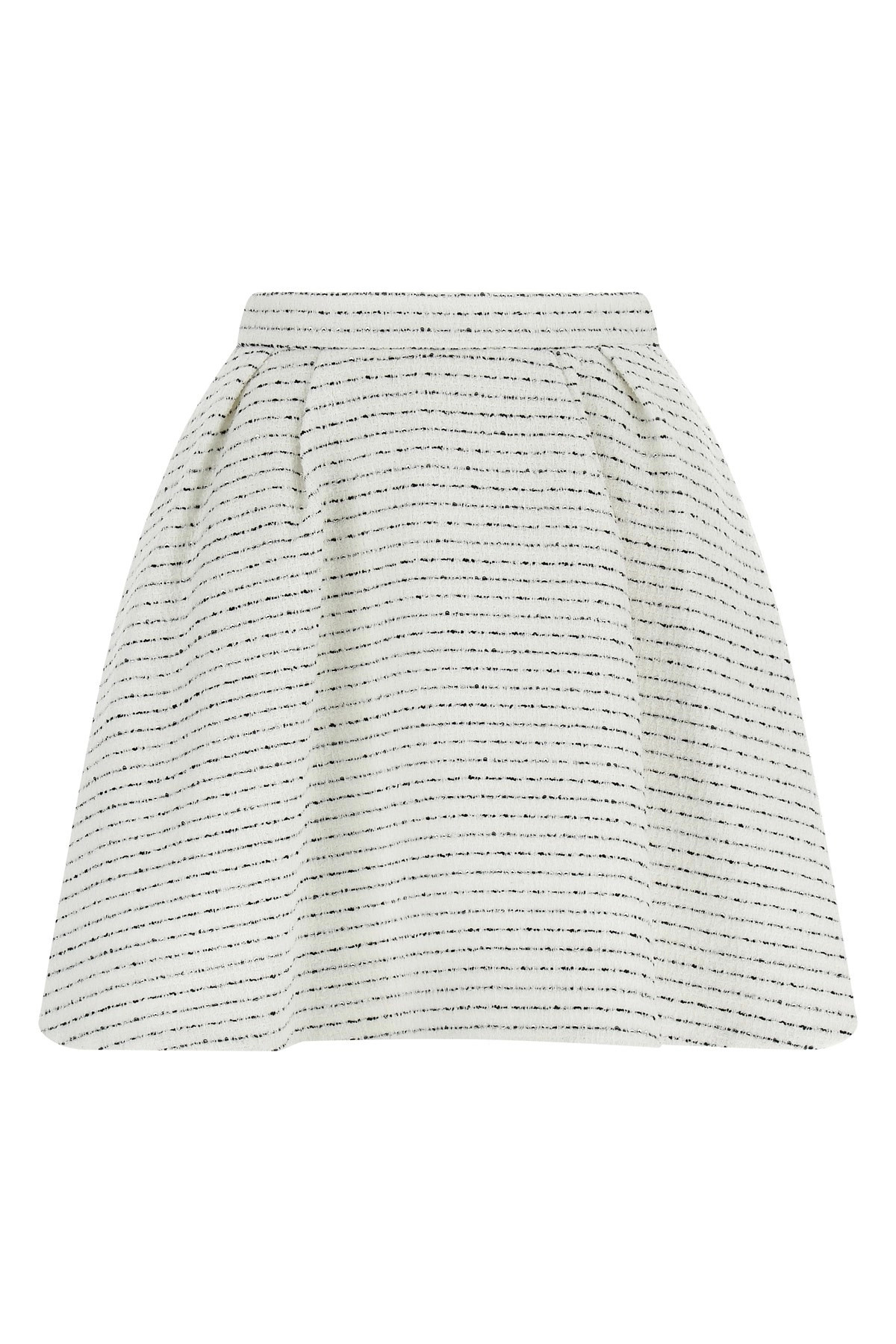 cod. FABX4220F45970822 Tweed mini skirt with micro sequins, wheel model, pleats at the waist, side zip and hook closure. Color: White Size & Fit: True to size fit Composition: 55% POLYAMIDE 34%CO 11% PL Made in: Italy