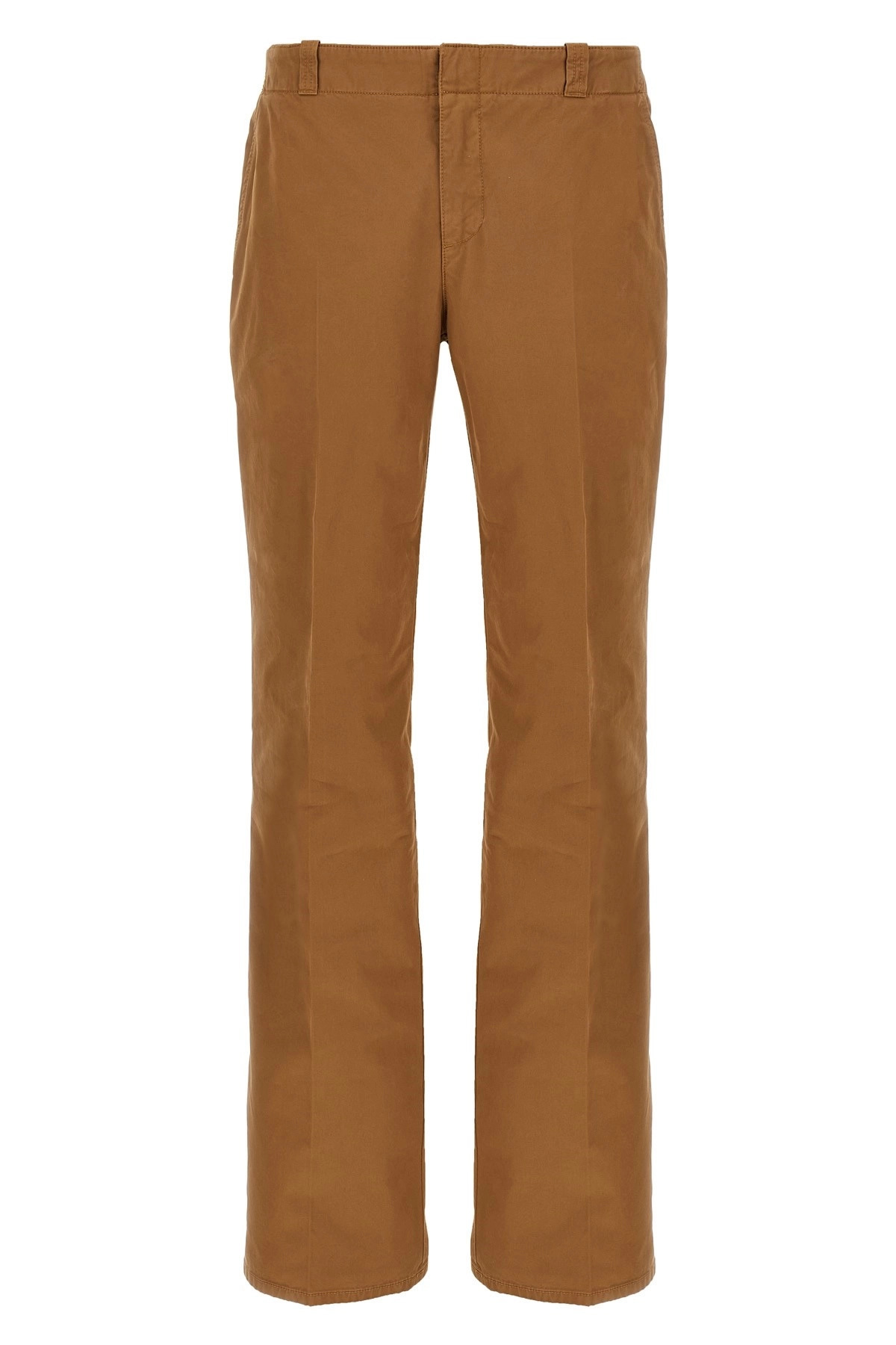cod. 821194QTADF9840 Garment-dyed pants in cotton yarns, chino model with low waist, straight leg, ironed pleat, zip and front button closure, pockets. SUSTAINABLE: This product is made of organic cotton. Color: Brown Size & Fit: true to size fit Composition: 100% cotton Made in: Italy