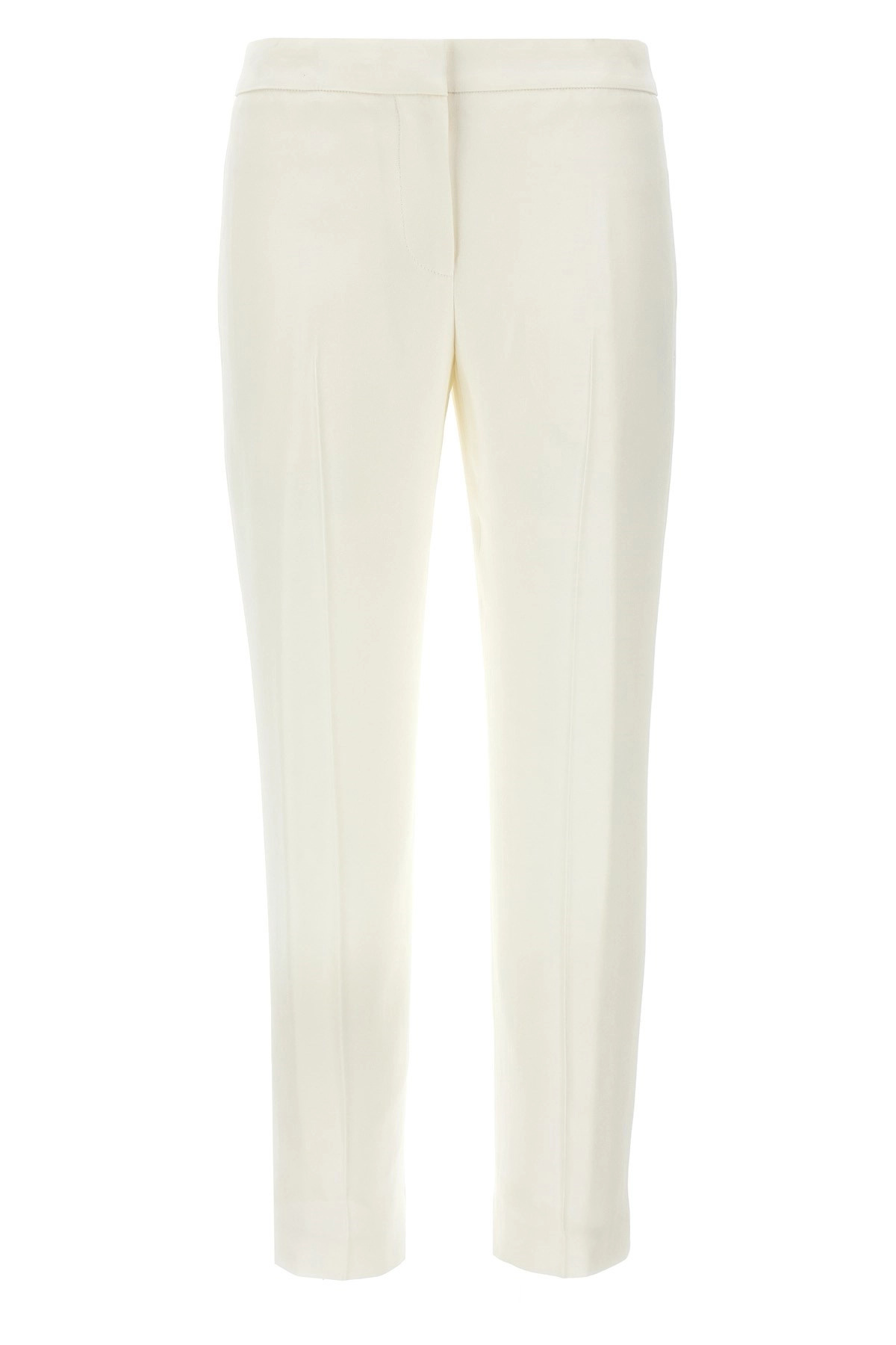 cod. 584968QEAAA9007 Crepe pants, straight fit, mid waist, ironed front crease, pockets, front zip hook and button closure. Color: White Size & Fit: True to size fit Composition: 52% viscose, 48% acetate Made in: Italy