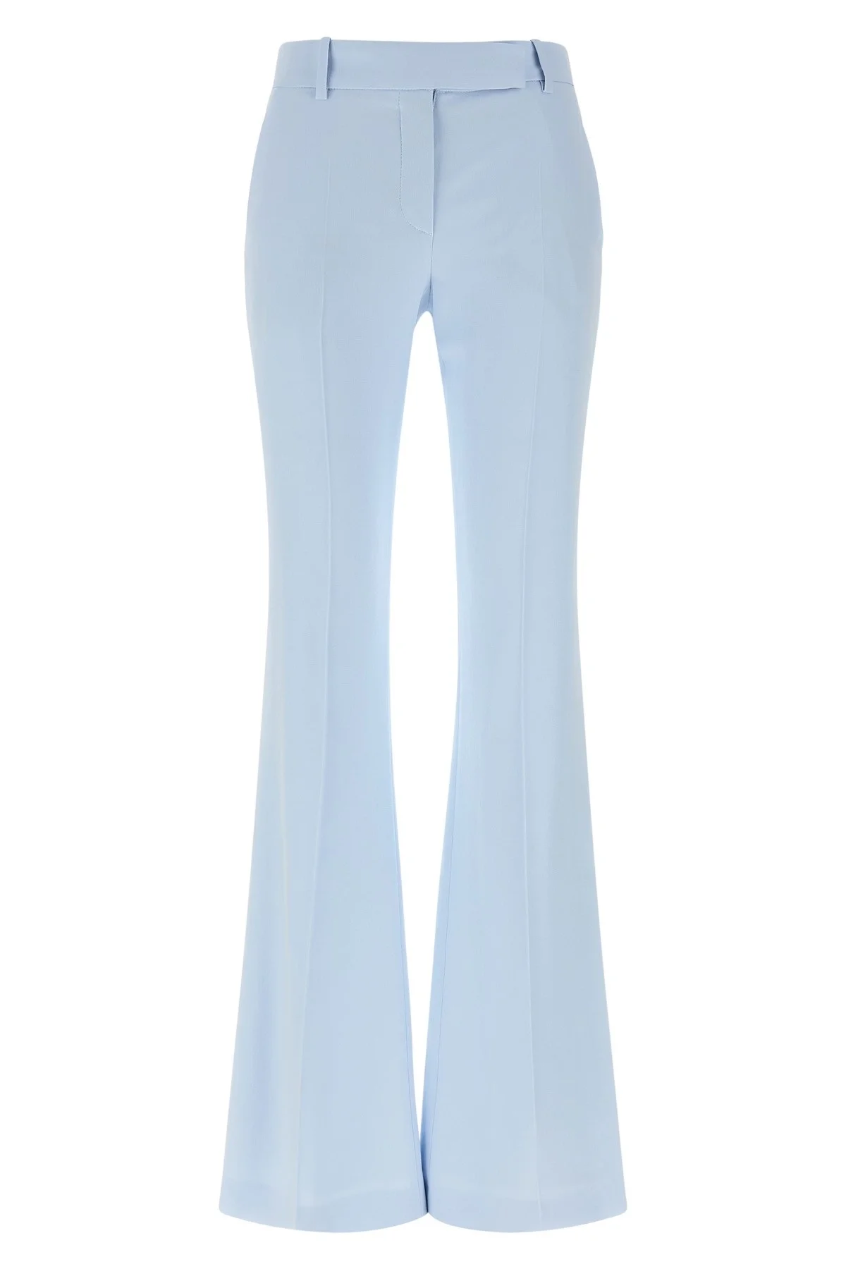 cod. 830046QEAAA4602 Thin crepe pants, low waist, stretched pleat, flared leg, hook and front button zip closure, pockets Color: Light Blue Size & Fit: true to size fit Composition: 52% viscose, 48% acetate Made in: Italy