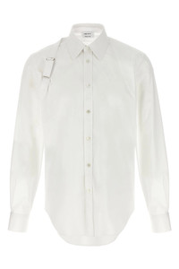 cod. 828170QNAAB9000 Cotton poplin shirt with 'Harness' detail with metal buckle, front button closure, long cuffed sleeves. Color: White Size & Fit: true to size fit COLLAR size Composition: 97% cotton, 3% elastane Made in: Italy