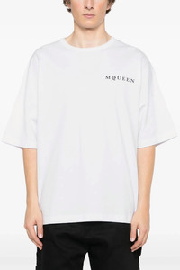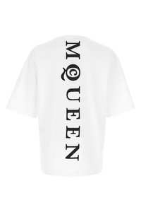 cod. 828434QTADE0909 Heavy cotton T-shirt with 'McQueen' logo print on the front and back, crew neck, short sleeves with dropped shoulders. Color: White/Black Size & Fit: oversized fit Composition: 100% cotton Made in: Italy