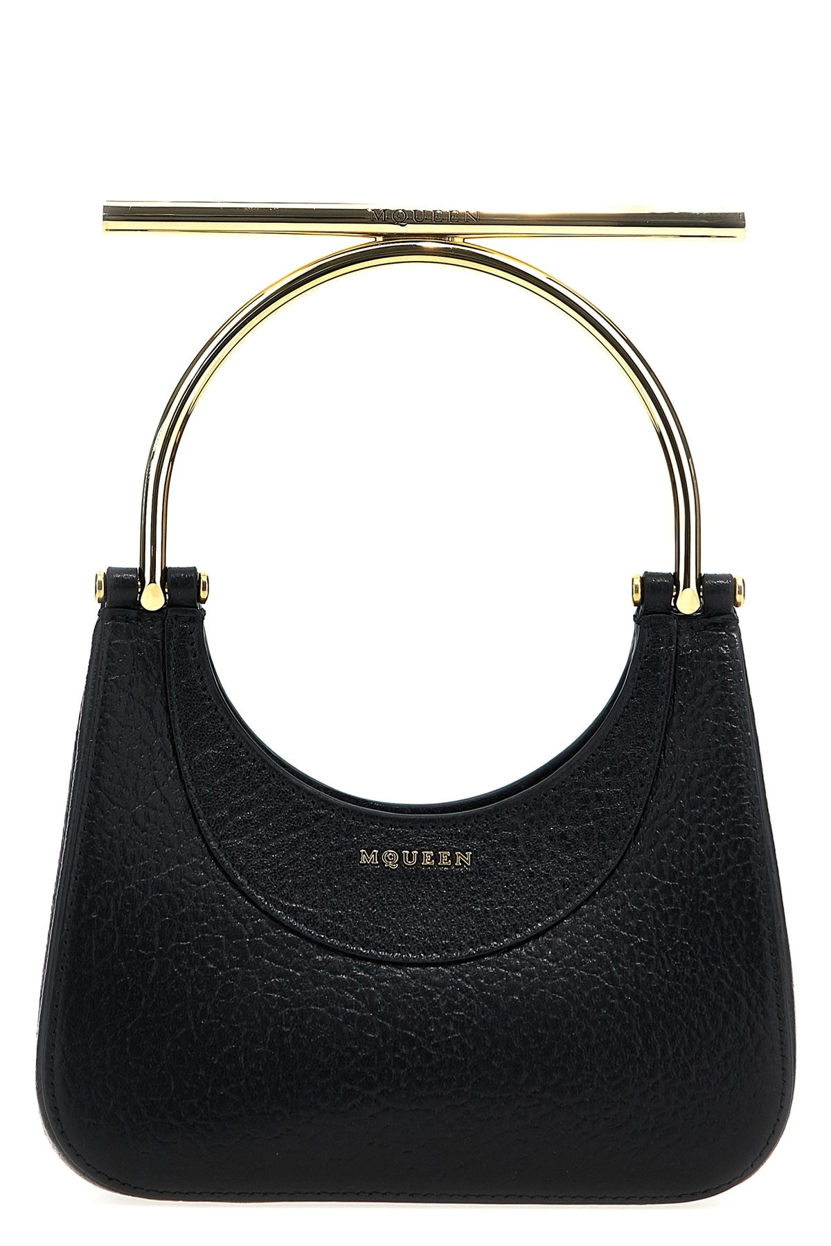 cod. 8035251VDBG1000 'Mini Cross-Bar' full-grained lambskin leather handbag, gold metal circular handle, front logo print, button closure, removable chain shoulder strap. Color: Black Size & Fit: W 20 x H 17.5 x D 6 cm Composition: 100% lamb leather (Ovis aries) Made in: Italy