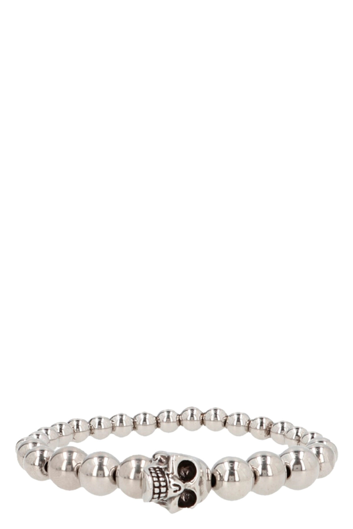 cod. 554504J160Y0446 Alexander McQueen onice and resin bracelet with sphere and central skull Color: Silver Composition: 50% onice 50%resin Made in: Italy