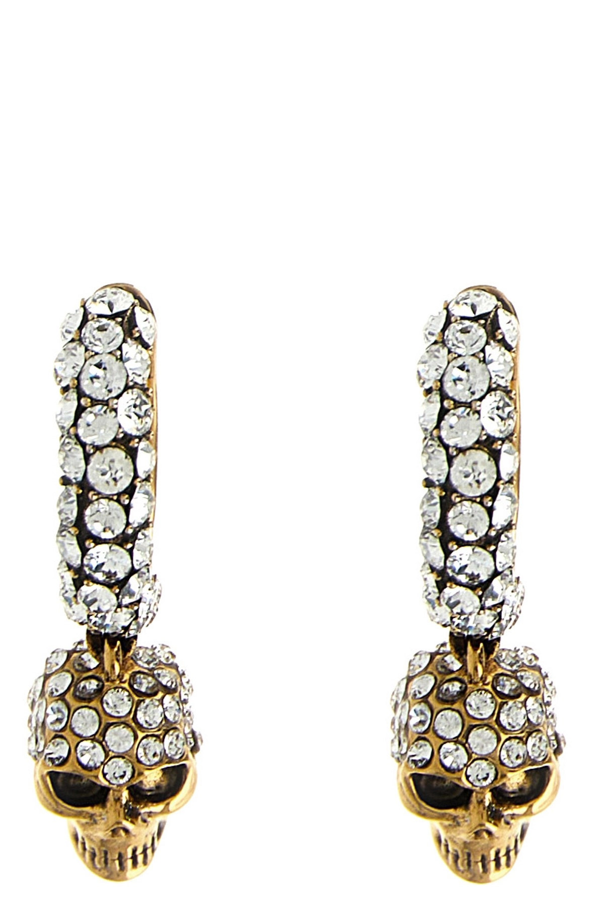 cod. 823561J161C4148 Gold metal earrings with rhinestone applique and Skull pendant, circle model. ITEM CANNOT BE RETURNED Color: Gold Size & Fit: One size Composition: 100% brass Made in: Italy