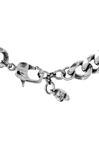 cod. 836629J161N0446 Silver chain bracelet, skull engraved plaque. Color: Silver Size & Fit: One size Composition: 100% brass Made in: Italy