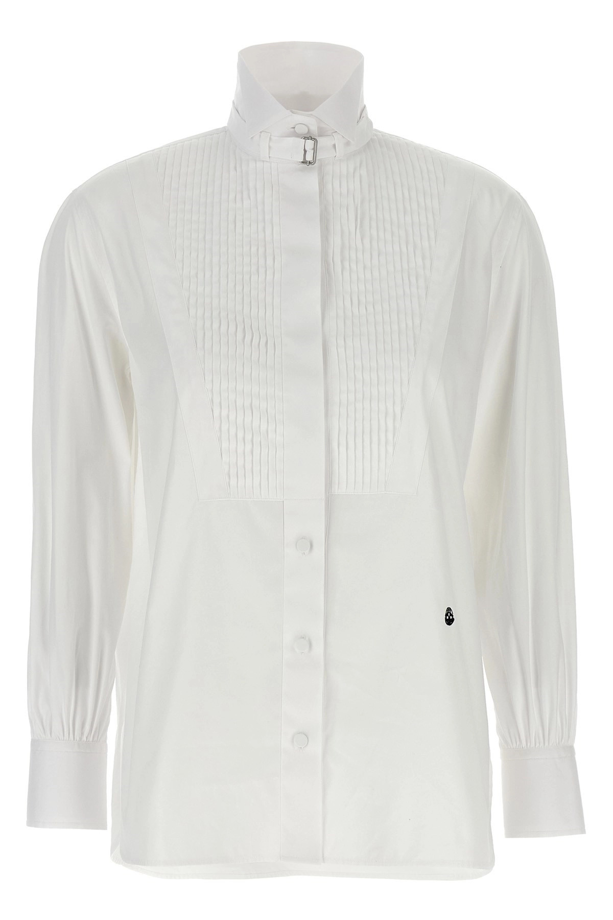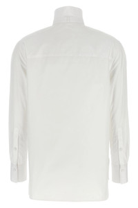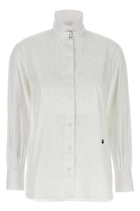 cod. 830388QAABS9000 Tuxedo cotton poplin shirt with pleated plastron, collar with adjustable strap, contrast reverse Skull embroidery and front button closure, side slits, long cuffed sleeves. Color: White Size & Fit: true to size fit Composition: 100% cotton Made in: Italy