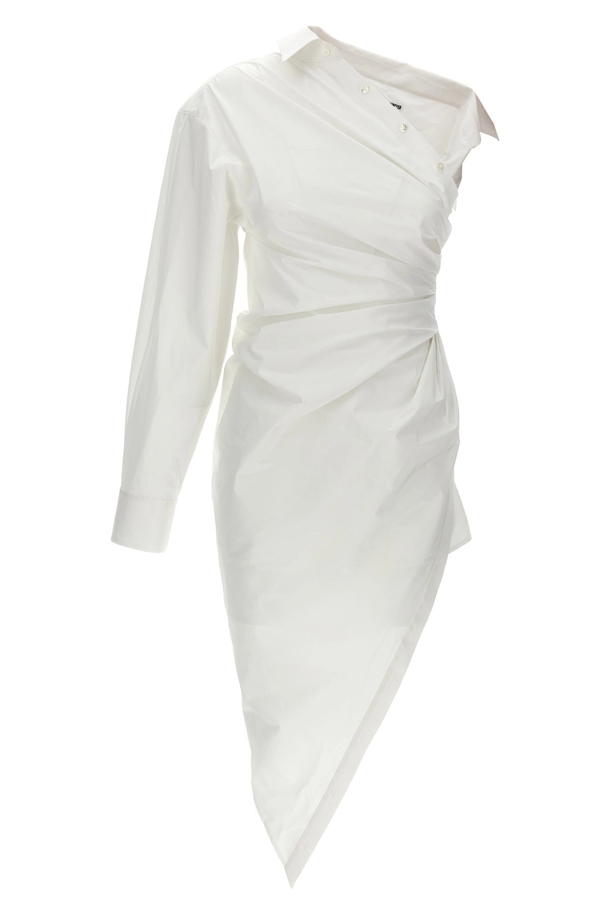 cod. 1WC4246704100 Asymmetrical cotton shirt dress, one-shoulder model with long cuffed sleeves. Side zip closure. Color: White Size & Fit: true to size fit US size Composition: 96% cotton, 4% elastane Made in: China