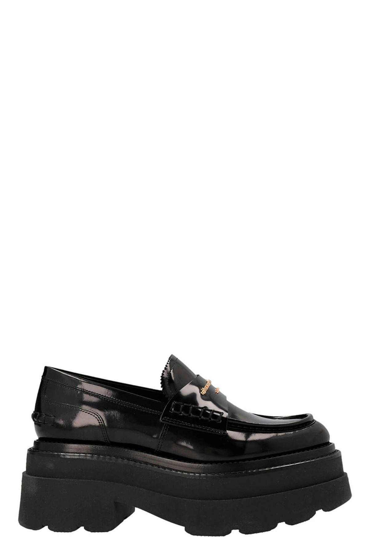cod. 30322F023001 'Carter Platform' leather loafers with front metal logo and chunky rubber sole. Color: Black Size & Fit: EU WOMEN Composition: 100% cow leather Made in: Spain