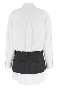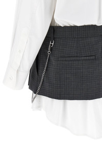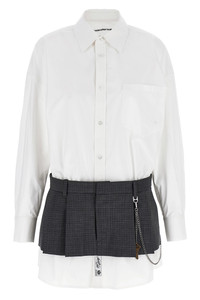 cod. 1WC3256791964A 'Pre-Styled Shirt Dress W Chain' cotton dress, oversized shirt model with overlapping skirt, shirt with front button closure, breast pocket with tone-on-tone embroidered logo, long sleeves with cuffs and dropped shoulder and mini skirt in flounced melange wool, zip hook and front button closure, pockets, chain with removable charm. Color: Multicolor Size & Fit: true to size fit - US sizing Composition: 100% cotton Made in: China