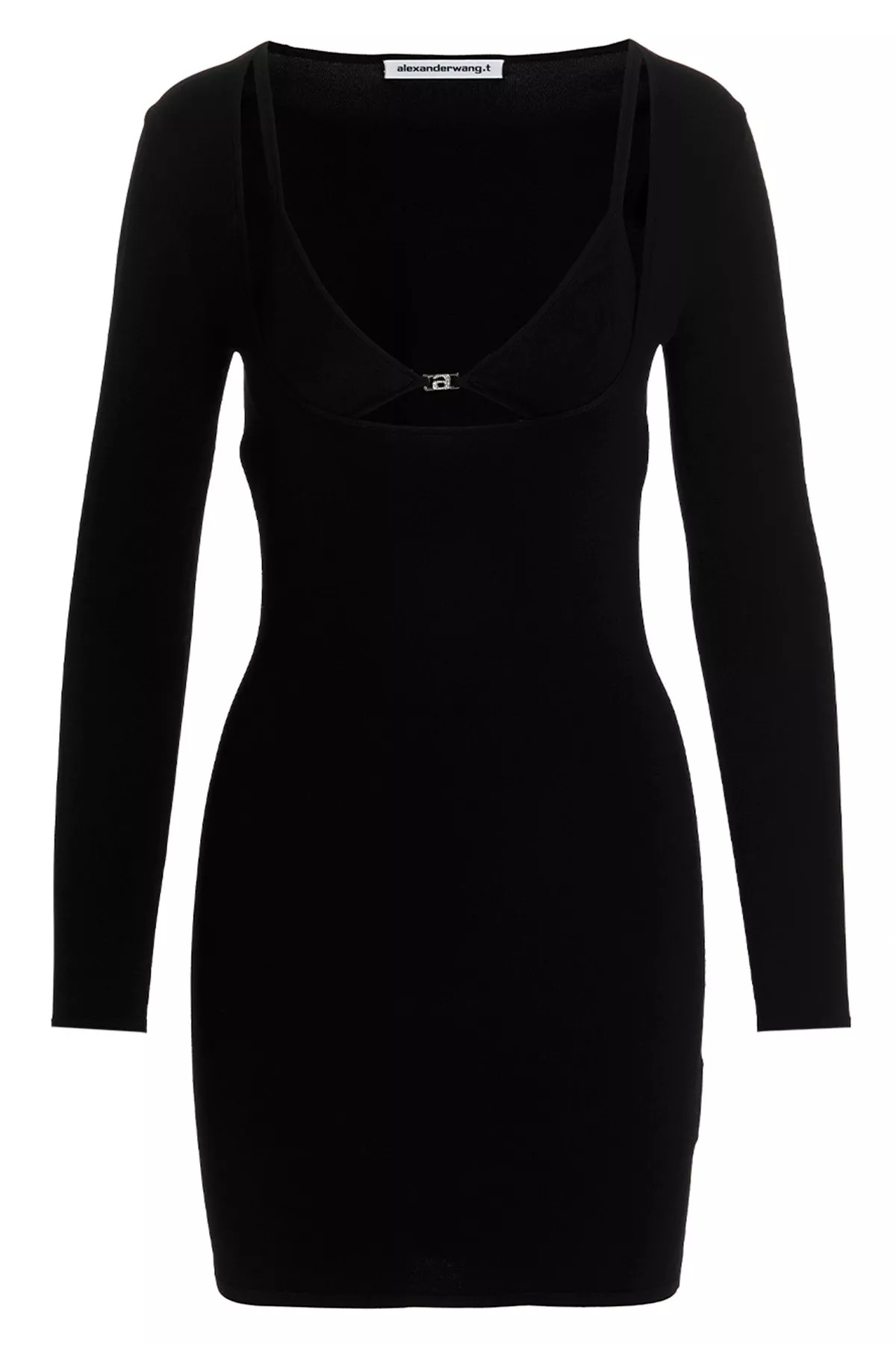 cod. 4KC2236004001 Hybrid Bikini' stretch fabric dress with cut-out details and logo and long sleeves. Color: Black Material: 53% viscose 43% polyamide 4% elastane Made in: China Size &Fit: True to size fit