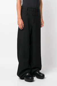 cod. BMCA056F23FAB00110001000 'Double Belted' wool pants with zip and button closure, pockets, wide leg with crinkled effect on the back. Color: Black Size & Fit: True to size fit Composition: 100% virgin wool Made in: Italy