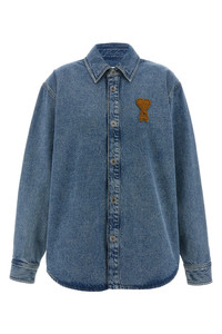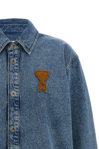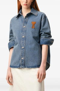 cod. UJK897DE0046480 Used-effect indigo cotton denim overshirt with contrast stitching, Ami De Coeur crochet patch and front snap button closure, shirt collar, long cuffed sleeves. Color: Blue Size & Fit: oversized fit Composition: 100% cotton Made in: Portugal PROMO CODE NOT APPLICABLE