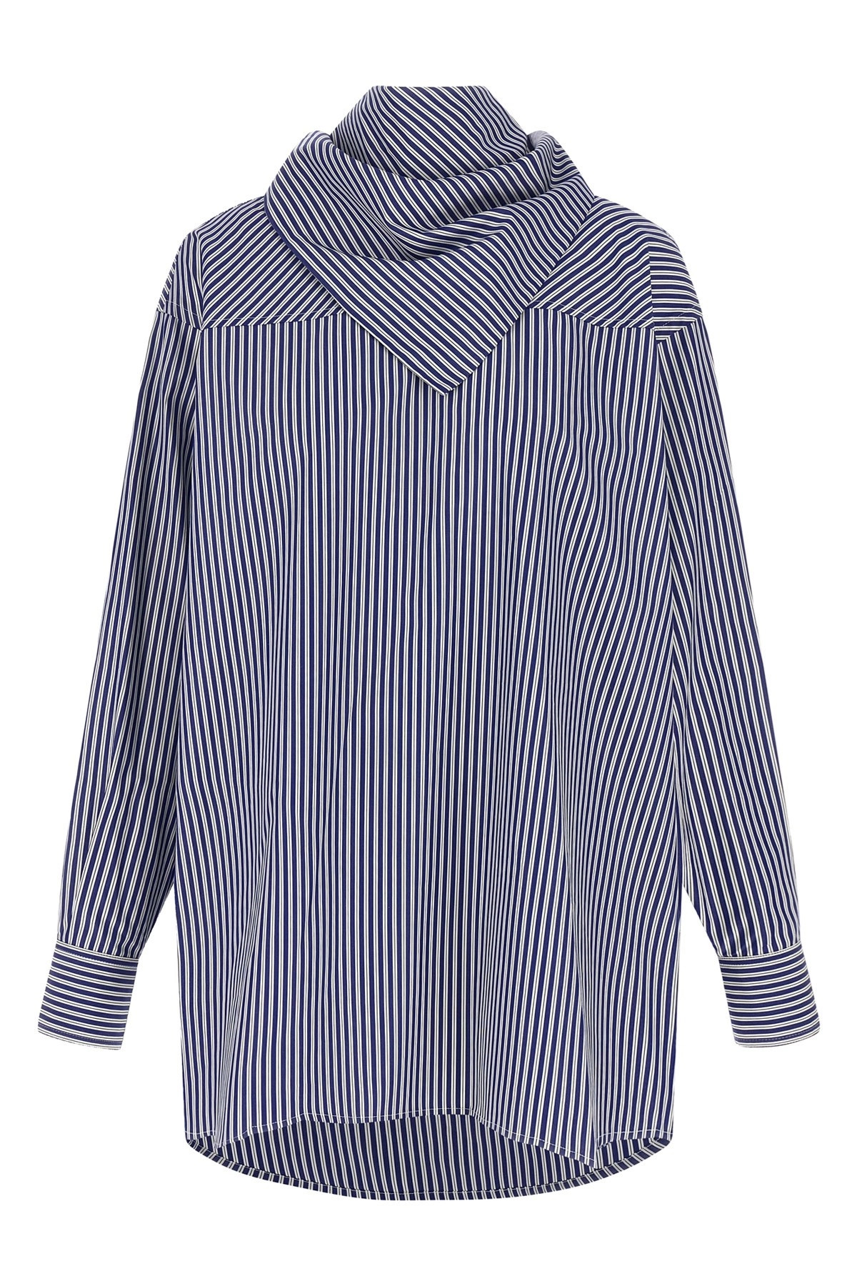 cod. UTP801CO01334901 'Bandana Blouse' striped cotton shirt, crew neck with bandana-effect maxi collar, back closure with one button, long sleeves with cuffs. Color: Light Blue Size & Fit: Oversized fit Composition: 100% cotton Made in: Bulgaria