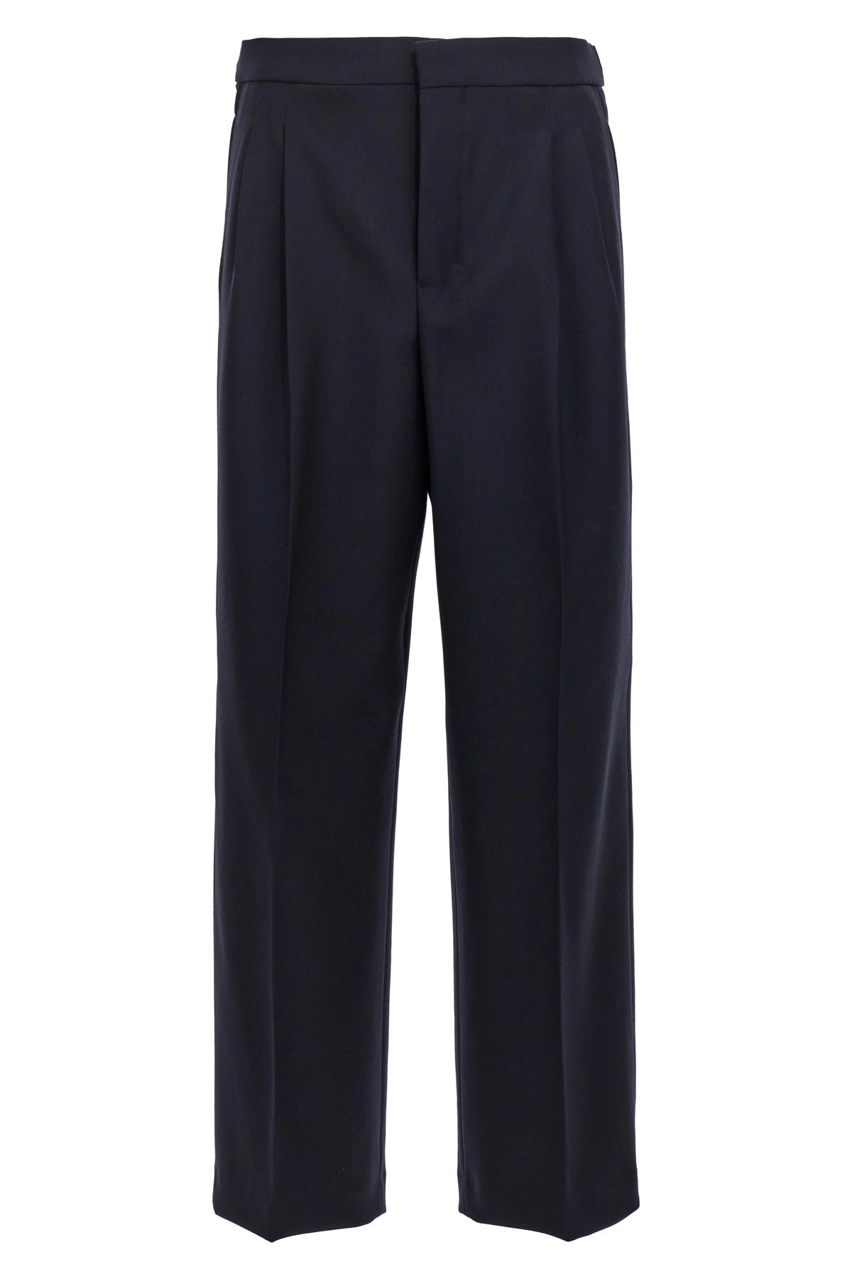 cod. HTR429WV00264011 Wool pants with pin and ironed pleat, button closure, pockets. Color: Blue Size & Fit: Large fit French size Composition: 100% virgin wool Made in: Romania