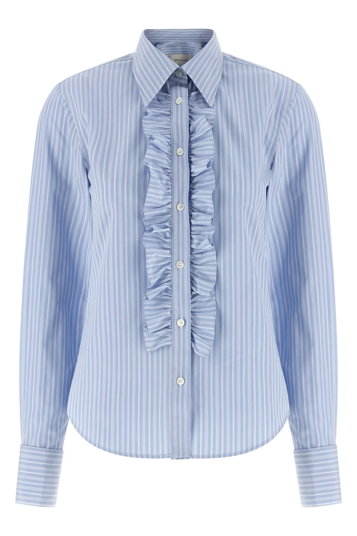 cod. FSH821CO02194844 Striped cotton poplin shirt, button closure with front jabot, micro metal logo on the back, long sleeves with cufflinks. Color: Light Blue Size & Fit: slim fit - FRENCH Size Composition: 100% cotton Made in: Portugal