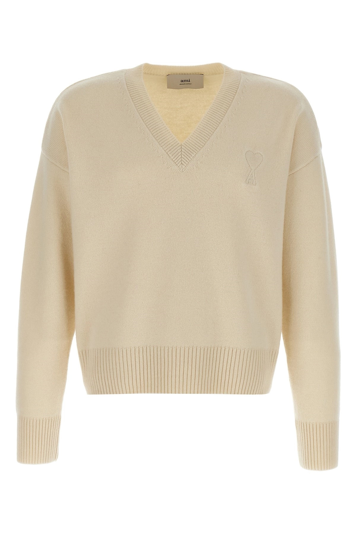 WHITE WOOL AMI DE COEUR V NECK SWEATER