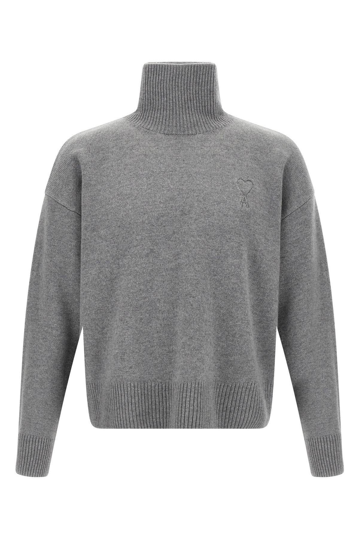 cod. UKS821KN0071050 Wool and cshmere sweater, tone-on-tone puff logo detail on the front, high neck, dropped shoulder, long cuffed sleeves. Color: Gray Size & Fit: True to size fit Composition: 90% wool, 10% cashmere Made in: Italy
