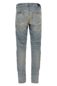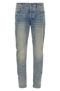 cod. AMDNSY1132CLAYINDIGO Delave and used stretch cotton denim jeans with side '3D Bones' applications, skinny model, button closure, five pockets, back logo embroidery. Color: Light Blue Size & Fit: true to size fit Composition: 92% cotton 8% elastane Made in: United States