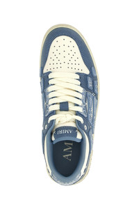 cod. AMFOSR1140ASHLEYBLUE 'Bandana Skel Top Low' craquele leather sneakers with openwork details, laces closure, two-tone rubber sole. Each piece is meticulously crafted and inherently unique. The slight variations in the artwork are a natural result of the printing process and contribute to the distinctive character of this product. Color: Blue Size & Fit: EU MEN Composition: 100% calfskin leather (Bos Taurus) Made in: Vietnam