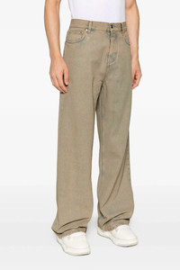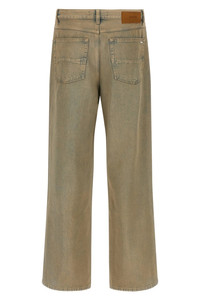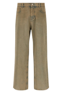 cod. AMDNGG1018INDIGODESERT Overdyed cotton denim jeans, wide and straight leg, front button closure, five pockets, and leather logo label at the back. This garment has undergone a special manufacturing process that results in intentional variations in shades and color, which add to the unique characteristics of the piece. This can lead to dye transfers. Please exercise caution when washing or dry cleaning this garment. Color: Beige Size & Fit: baggy fit Composition: 100% cotton Made in: Italy
