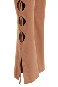 cod. ADFW22PA08770476002 Stretch knit pants with cut out detailing, side ties on the legs, an elastic waistband, and a flared leg. Color: Beige Size & Fit: True to size fit Composition: 80% viscose 10% polyester 9% polyamide 1% elastane Made in: Italy