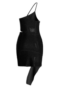 cod. ADFW22DR05772473004 One shoulder knit dress withll-over sequin appliques, zip closure, cut-out detail and an asymmetric hem.ymmetrical hemline. Color: Black Size & Fit: True to size fit Composition: 88% viscose 12% polyester Made in: Italy