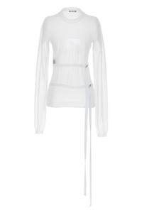 cod. 2301WKN41KN008001 B fastening' sweater in a transparent effect cotton blend with crewneck, lace up detail and buckles. Color: White Material: 82% cotton 18% polyamide Made in: Italy Size &Fit: True to size fit