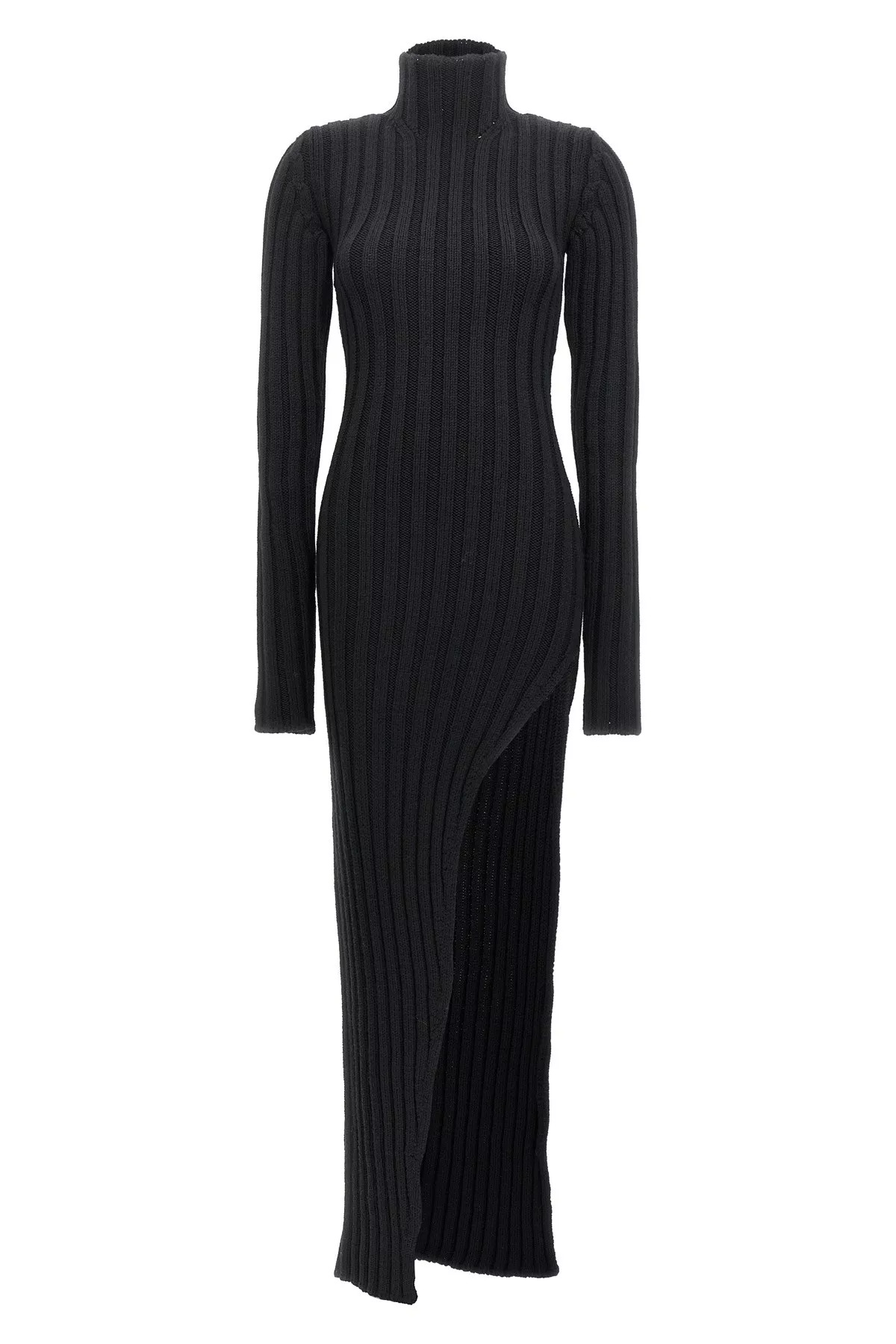 cod. 2302WKN34KN026099 'Cyntia' ribbed wool dress with slim fit high neck and long sleeves and a maxi side split. Color: Black Size & Fit: true to size fit Composition: 100% virgin wool