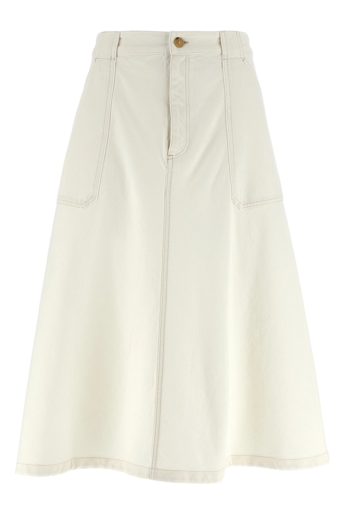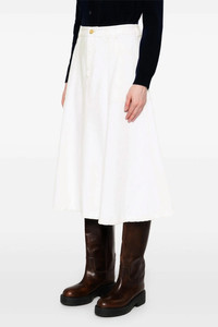 cod. COGZVF06410AAC 'Laurie' heavy canvas midi skirt, flared workwear model, mid waist, zip and front button closure, pockets. Color: White Size & Fit: true to size fit Composition: 100% organic cotton Made in: Tunisia