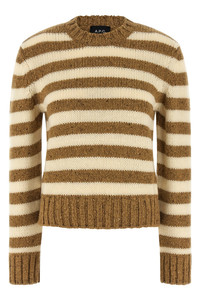 cod. WVBENF23467TCC Knitted striped virgin wool sweater, crew neck, long cuffed sleeves. Color: Brown Size & Fit: true to size fit Composition: 100% virgin wool Made in: Turkey