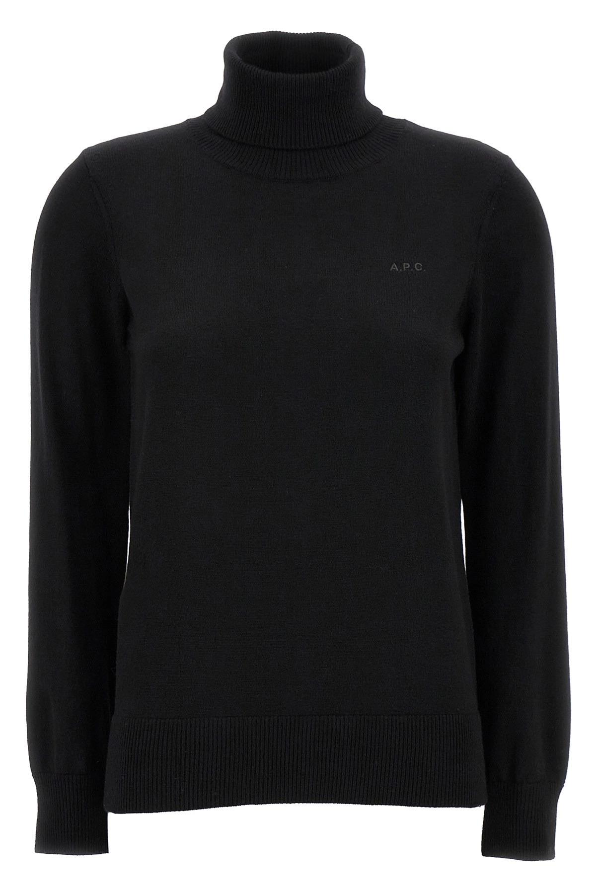 cod. WVAWMF23322LZZ 'Sybille' wool sweater with high neck, tone-on-tone front logo embroidery, long cuffed sleeves. Color: Black Size & Fit: true to size fit Composition: 100% wool