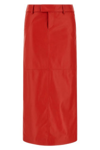 cod. ARMTMSK03LE04023 'Loren' nappa skirt, longuette model with wide back split, hook and button zip closure, pockets. Color: Red Size & Fit: true to size fit Composition: 100% lamb leather (Ovis aries) Made in: Italy
