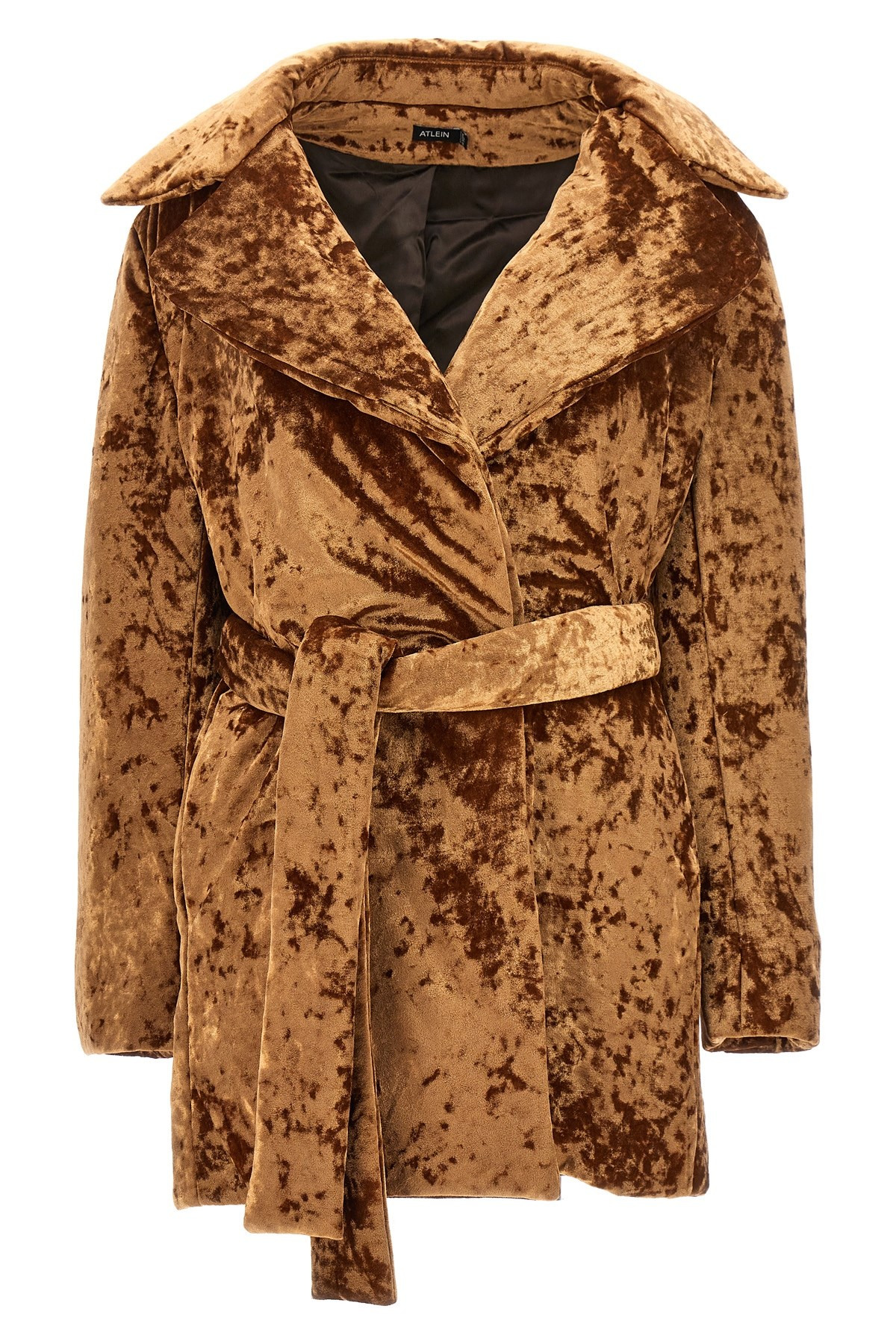 cod. M04233TJ23C0907 Padded velvet 'Crushed velvet' coat with no removable belt closure. Color: Brown Size & Fit: true to size fit French size Composition: 94% polyester 6% elastane Made in: France