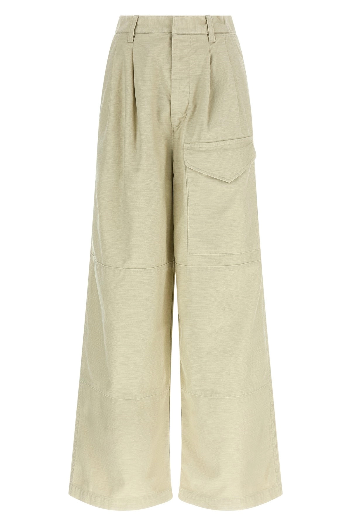 cod. A25AP02BPDUSTYIVORY Pants in satin bag fabric made with Egyptian Finx cotton extra-long bow for the warp, twisted into three threads to enhance its fullness and softness and a rough yarn, thick and irregular for the weft, cargo model, pin tucks, wide leg, zip closure and front snap button, pockets. Color: Beige Size & Fit: baggy fit Composition: 100% cotton Made in: Japan