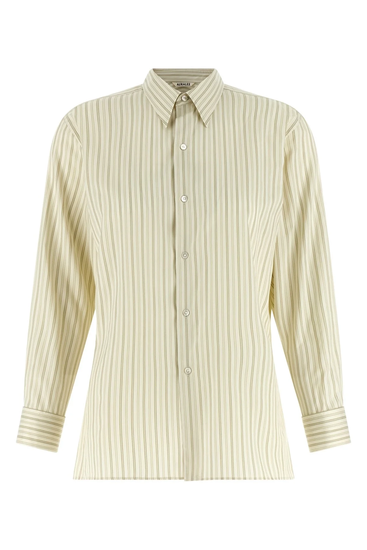 cod. A26SS03CSIVORYSTRIPE Striped cotton and silk shirt, high-density fabric with finely spun extra long fiber Giza with pointed collar, front mother-of-pearl button closure, long sleeves with cufflinks. Color: Multicolor Size & Fit: true to size fit Composition: 73% cotton, 27% silk Made in: Japan