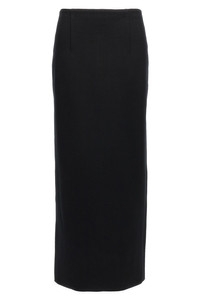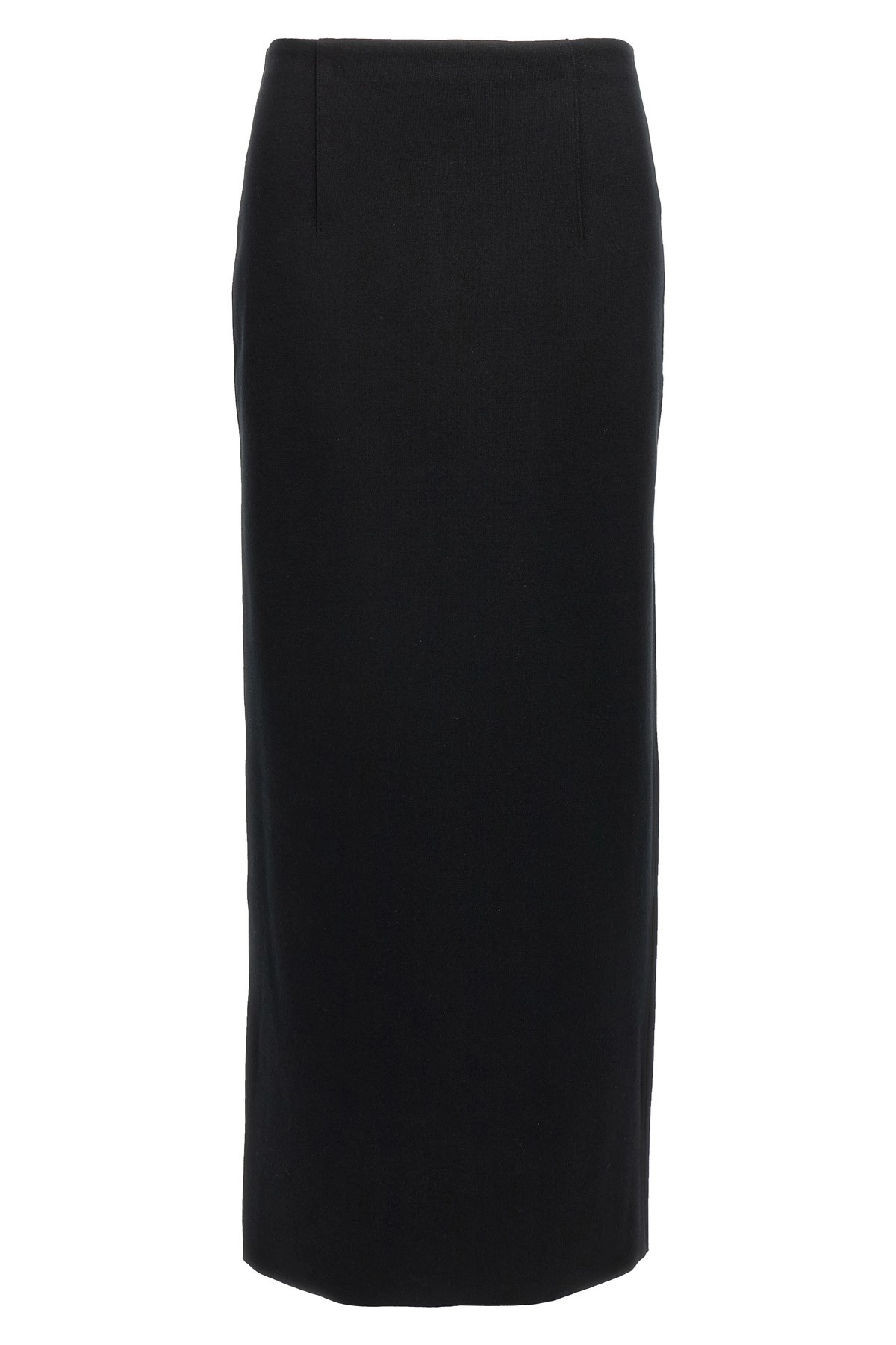 cod. A25SS02WFBLACK Long double-sided knitted skirt in yarn dyed with Supima cotton blend and silk with brushed finish and an elasticized yarn back, split and back zip closure. Color: Black Size & Fit: Slim fit Composition: 46% cotton 27% viscose 15% other 12% silk Made in: Japan
