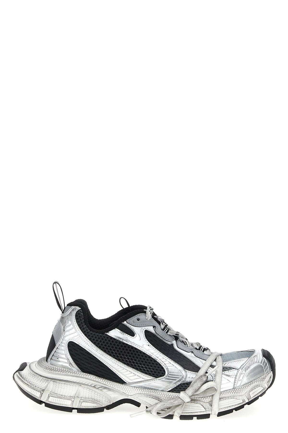 cod. 734734W3XGM1190 '3XL' used-effect mesh and polyurethane sneakers, embossed size on the upper and back of the heel, lace-up closure, rubber sole. Caution: Additional laces are tied around the shoe for presentation purposes and must be removed before use. Color: Silver Size & Fit: EU MEN Composition: 55% polyurethane, 45% polyester Made in: China PROMO CODE NOT APPLICABLE