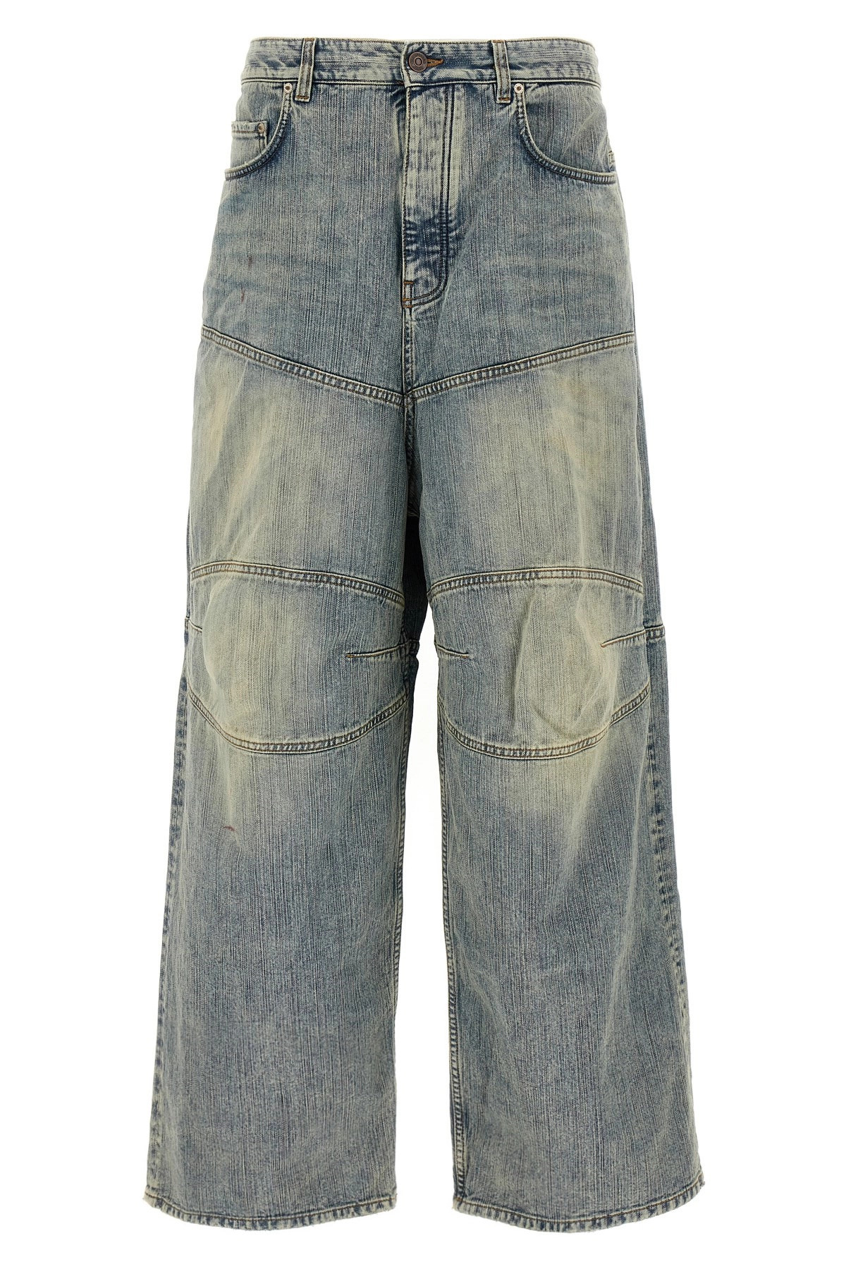 cod. 814161TNW655760 'Baggy' used-effect stonewashed Italian twisted denim jeans with stains, wide leg, low crotch model, extra stitching on knees and waist, front button closure, five pockets, back logo tag. Color: Blue Size & Fit: baggy fit Composition: 100% cotton Made in: Italy