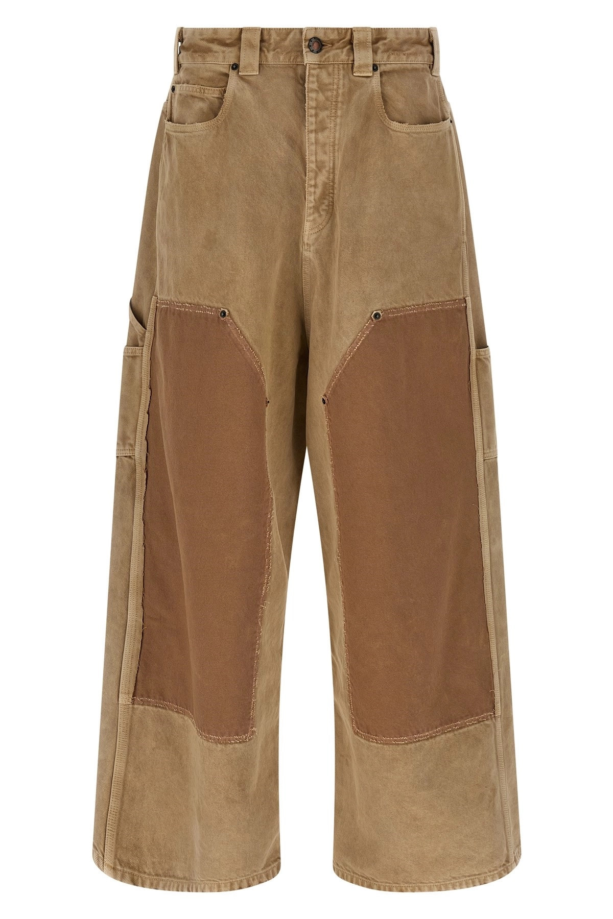 cod. 838672TSWB29501 'Baggy Ripped Off' used-effect delave cotton denim jeans, trompe l'oeil insert and front button closure, five pockets, wide and straight leg, low crotch, back logo tag. Color: Beige Size & Fit: Large fit Composition: 100% cotton Made in: Japan