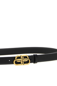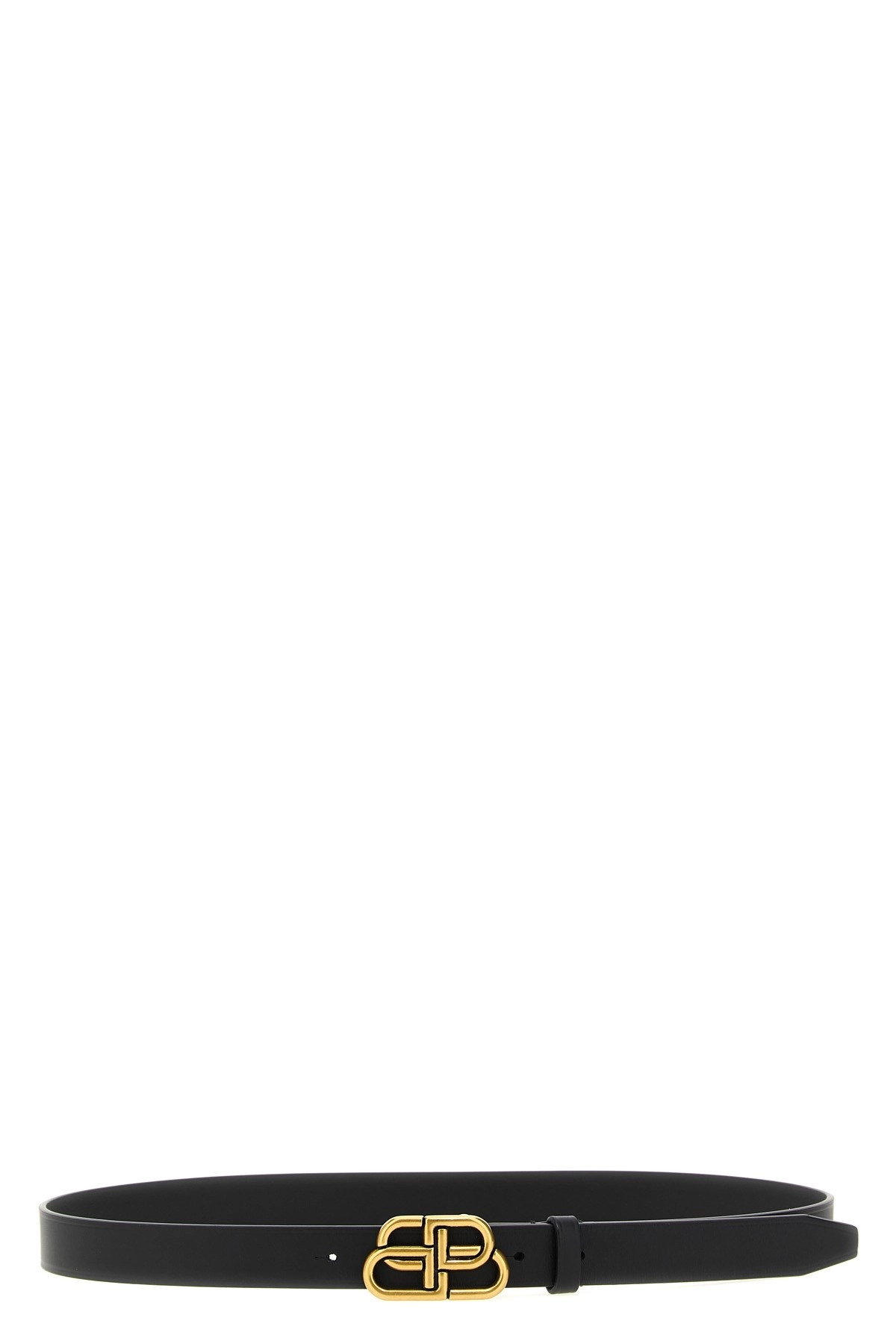 cod. 5816901CH041000 'BB Thin' leather belt with antiqued gold logo buckle. Color: Black Size & Fit: H 2.8 cm Composition: 100% calfskin leather (Bos Taurus) Made in: Italy