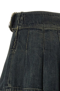 cod. 852329TTW763394 'Buckle Pleated' flared and pleated skirt in stonewashed stretch cotton denim with side zip closure, belt with maxi metal logo buckle. Color: Blue Size & Fit: true to size fit - FRENCH size Composition: 100% cotton Made in: Italy