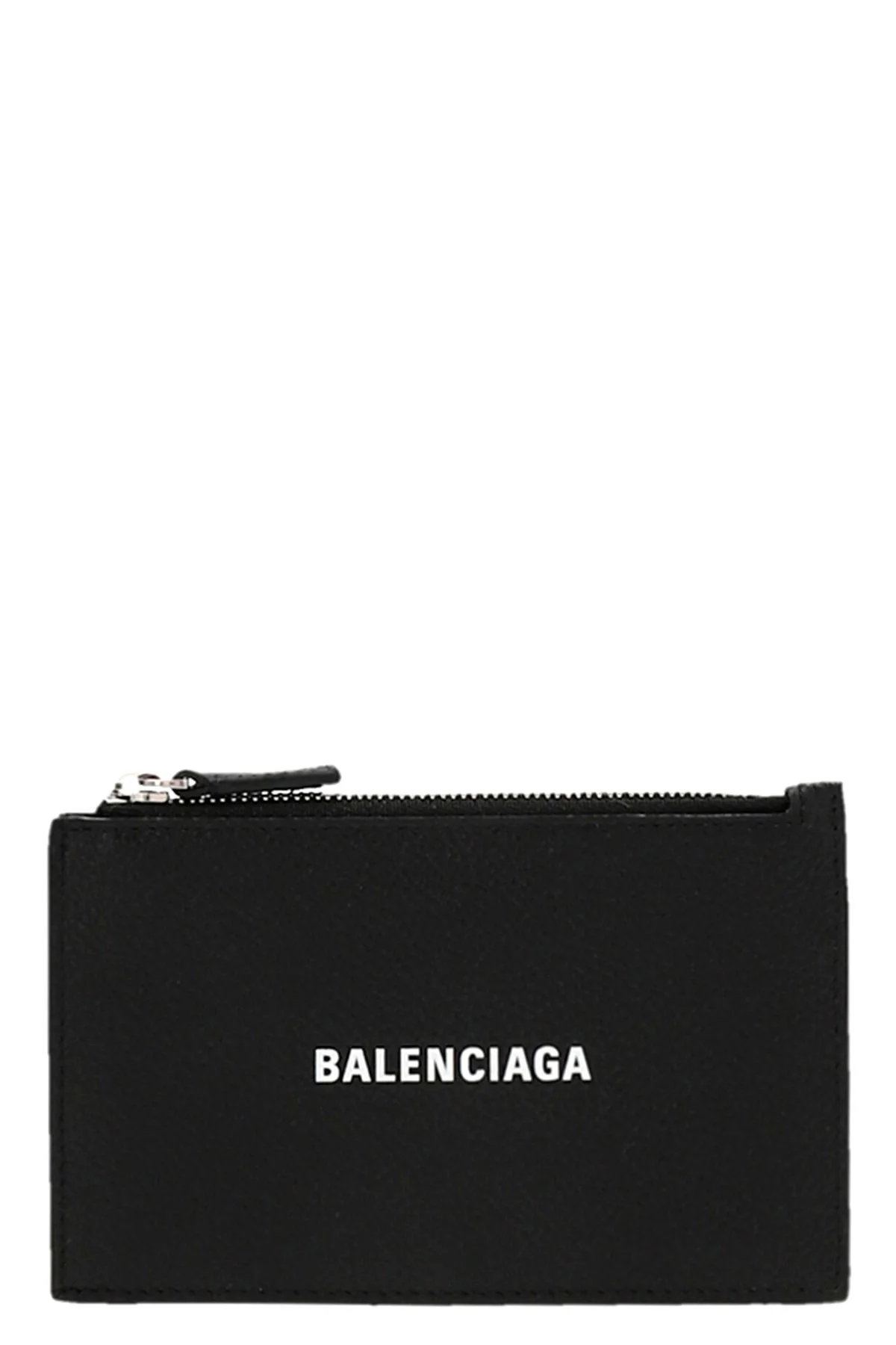 cod. 6405351IZI31090 Cash' grained calf leather card holder with logo print and a zip closure. Color: Black Size & Fit: W 13.5 x H 6.8 x D 1.8 cm Composition: 100% calfskin leather Made in: Italy