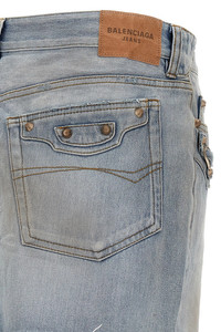 cod. 852324TTW744200 'City' miniskirt in used-effect cotton denim, iconic details of the Le City bag on the front and back side pockets, front zip and button closure, pockets, back logo tag, garment hem with raw cut hem. Color: Light Blue Size & Fit: true to size fit - FRENCH size Composition: 100% cotton Made in: Japan